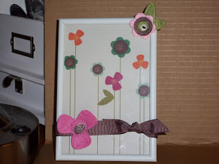 I was creating a card with our Sweet Pea dsp (Occasions Mini) and was once again impressed with the beauty of this packet of paper! I realized I could actually frame some of these beautiful pages for my home, office or as a gift. So that's just what I did! I bought several of these frames at a discount store last year and still had a couple on hand. After cutting the dsp and putting it in the frame I decided to add some some Chocolate Chip ribbon and Sweet Pea Stitched Felt flowers (Occasions Mini). I am very happy with how this came out; I made it for a gift but I have the perfect little corner on my desk at work for it...hm-m-m-m, what to do!! Thanks for visiting!